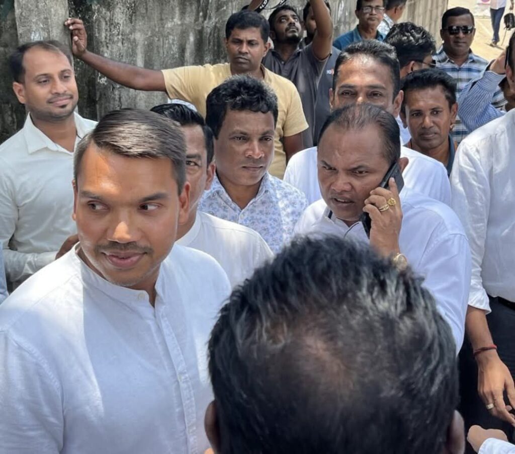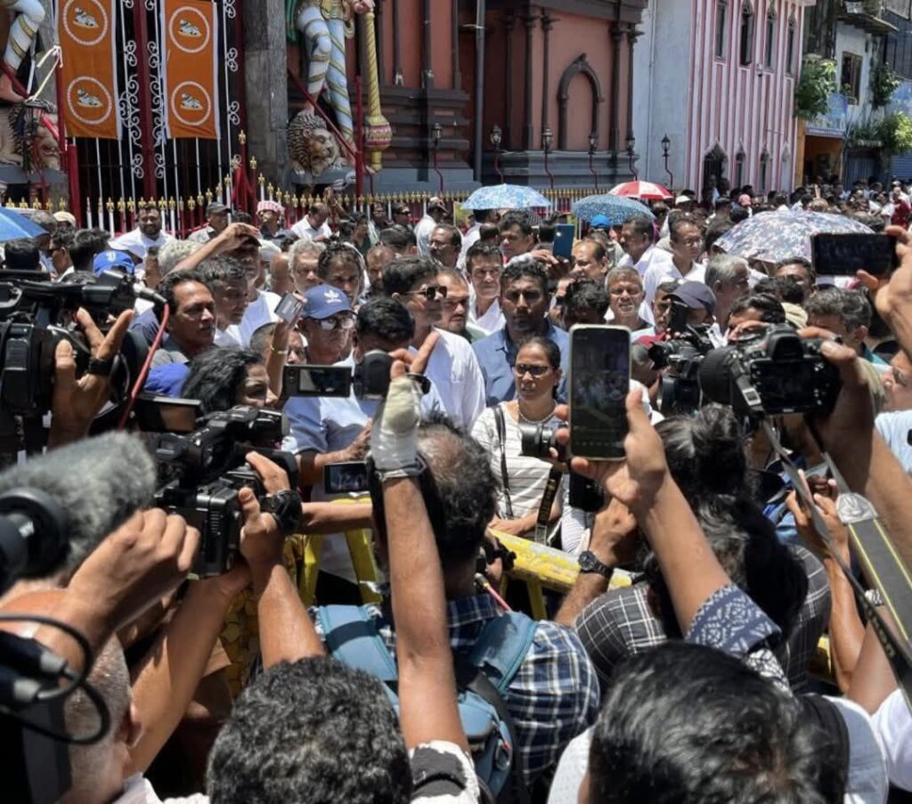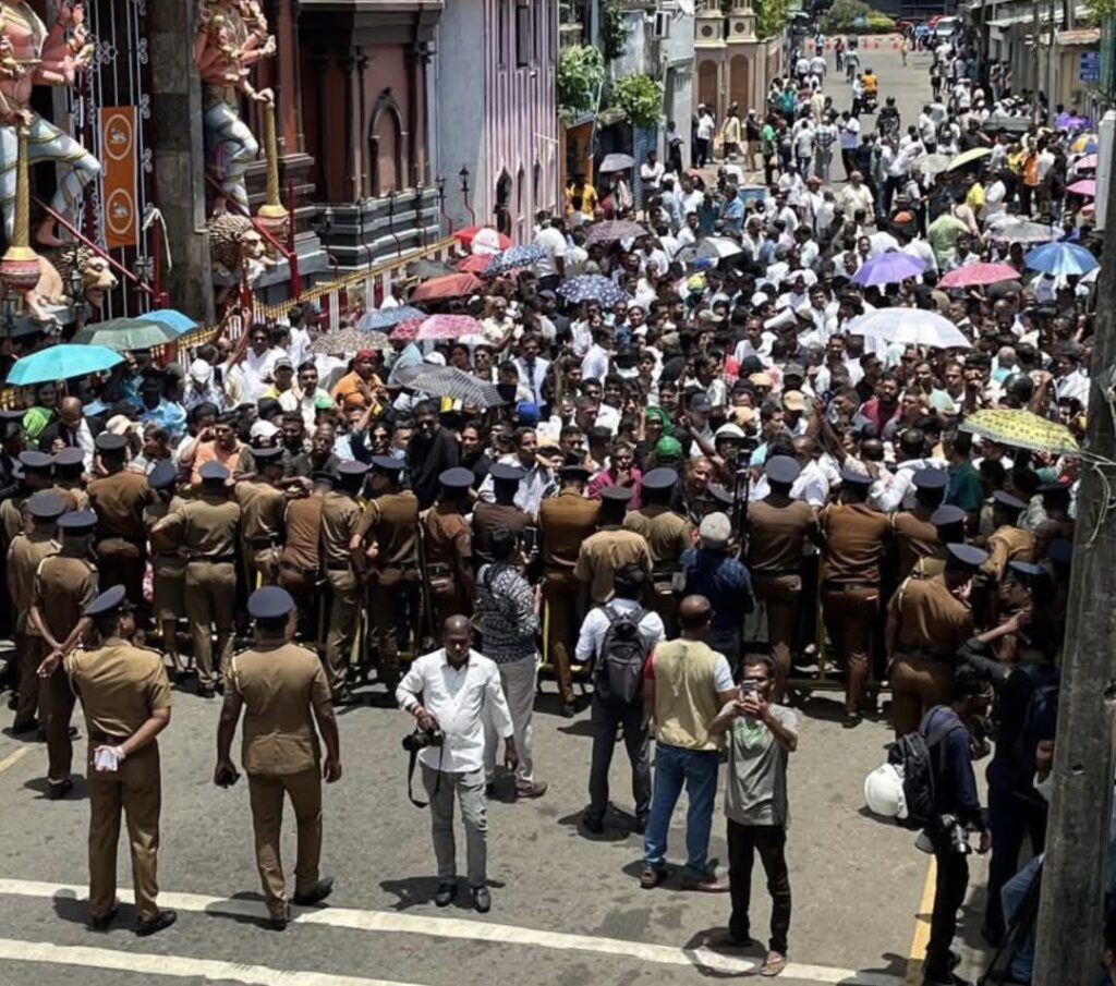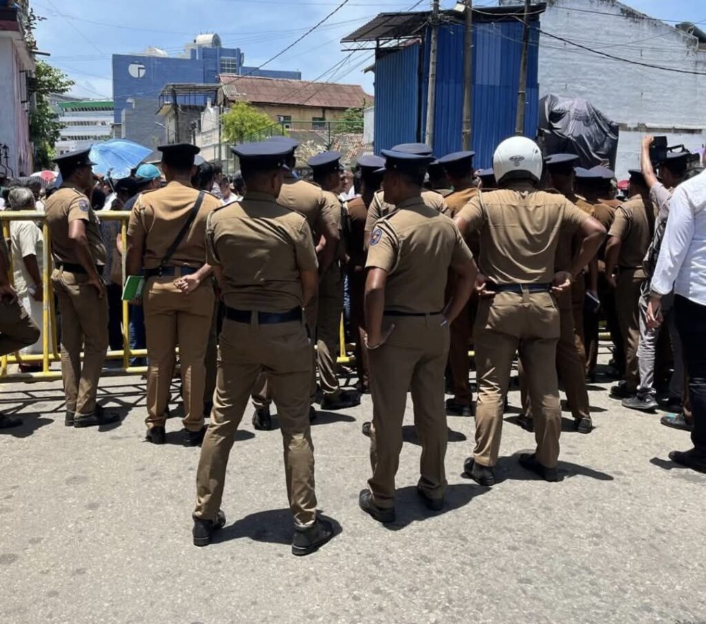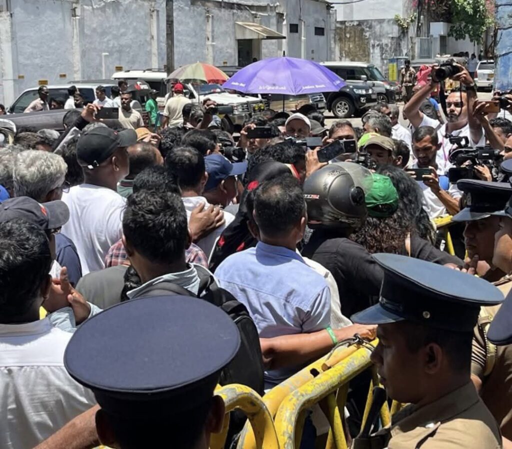 Outside the court complex, opposition supporters launched protests chanting slogans such as “Anura go home,” calling for the Government to step down. The demonstration drew the participation of Opposition Leader Sajith Premadasa, who joined protesters voicing anger against the Government.