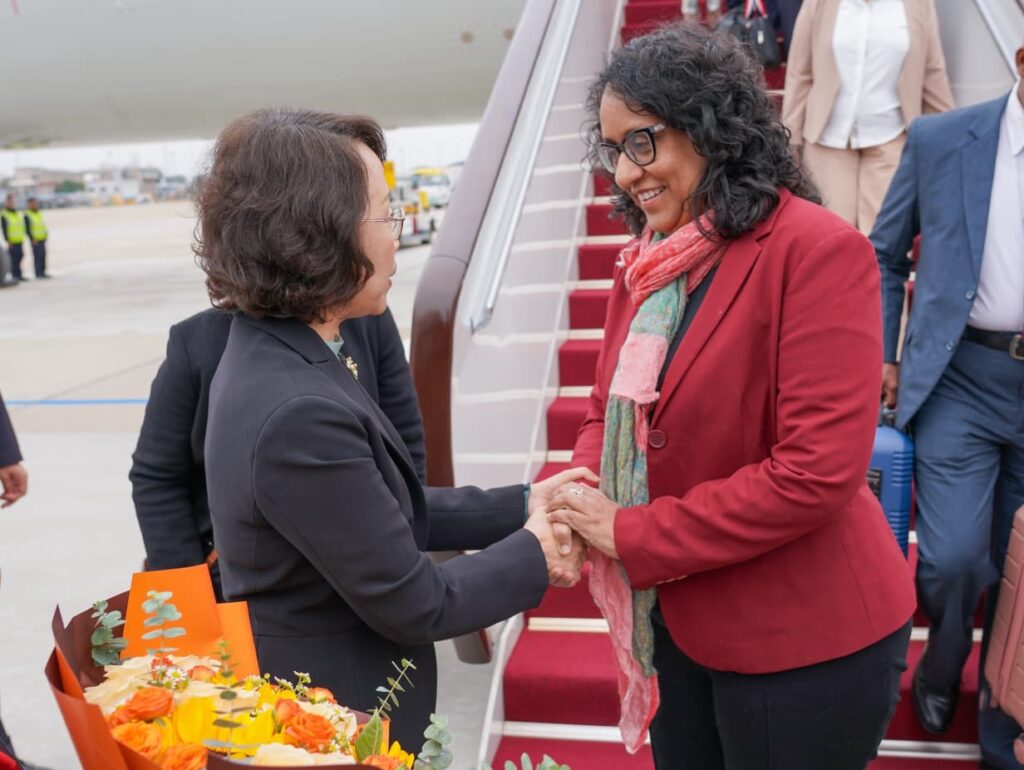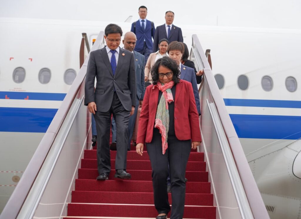 Prime Minister Dr. Harini Amarasuriya arrived in Beijing, China, on 12 October for an official visit to attend the Global Leaders’ Meeting on Women 2025, upon the invitation of the Government of the People’s Republic of China. On her arrival, she was welcomed by Ms. Cao Shumin, Minister of the National Radio and Television Administration.