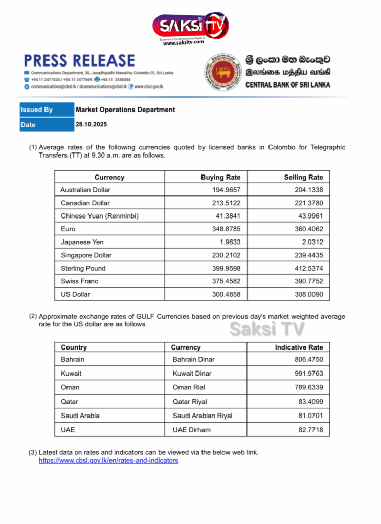 The Sri Lankan Rupee has depreciated further against the US Dollar today (28), crossing the Rs 300 mark for the first time since September 2024, according to the latest data from the Central Bank of Sri Lanka (CBSL).