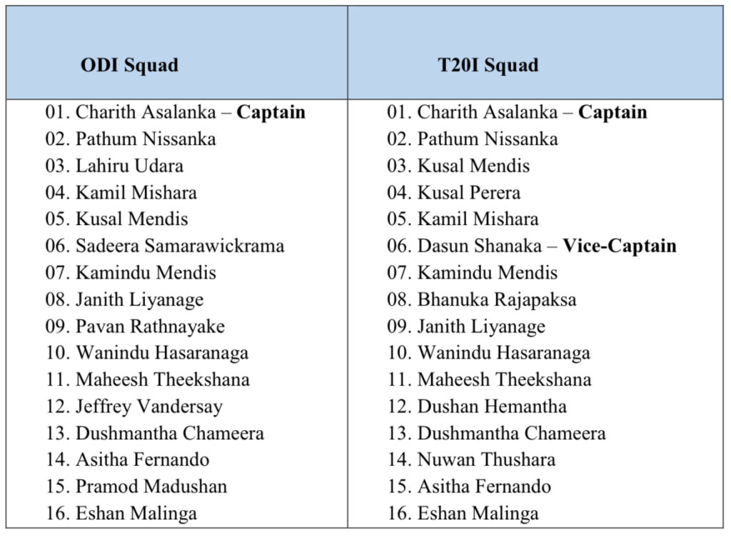 The Sri Lanka Cricket Selection Committee has selected the following squads to take part in the Sri Lanka Tour of Pakistan 2025.
